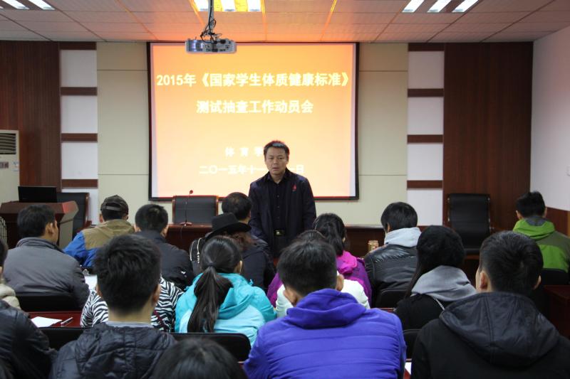 今年是公司连续第三年作为教育部国家员工体质健康标准测试工作组,学校及学院领导高度重视体测工作,要求认真贯彻教育部《关于开展2015年< 国家员工体质健康标准(2014修订)>测试抽查复核工作的通知》精神,积极组织业务学习与培训,严格按照规范要求做好各项准备工作。学院召开体测工作动员会,副经理席玉宝作动员讲话,他要求专家组成员要严谨工作,明确任务,责任到位,确保测试工作有序推进。