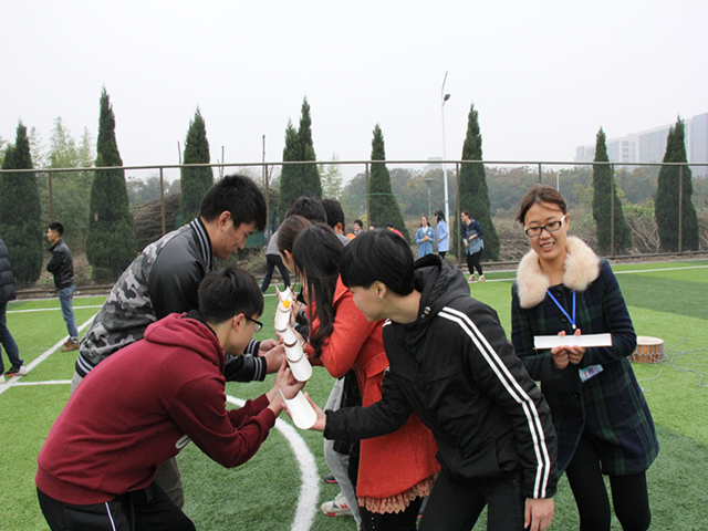 在半天的活动中,同学们通过“不倒森林”项目中学习协同节奏、齐心竞争。在“大海捞针”项目中,队员间则需要进行通畅的信息沟通,充分认识并承担起各自的角色,培养聆听他人的能力,突破思维定势,培养团队解决问题的能力。在“前方打仗,后方支援”游戏中通过模拟战争时期军民同心,齐心抗战让同学们感受到和平生活的来之不易。在团队项目中,小组成员同心协力完成任务,并在每个项目结束后积极分享感受,引发大家的思考,培养起强烈的团队凝聚力与协同作战的责任感。同学们在竞赛中默契配合,在矛盾中寻找问题的解决办法,促进团队成员的互信、互爱、互助。整个拓展过程充满了欢声笑语。