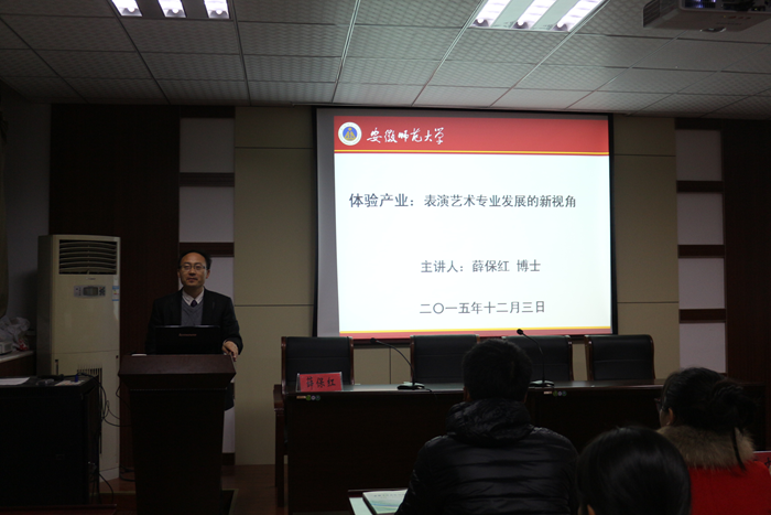 12月3日,安徽工程大学体验教育研究中心主任,英国正版365官方网站兼职教授薛保红博士为我班同学做主题为《体验产业:表演艺术专业发展的新视角》专题讲座,2015级辅导员张迪老师、冯中超老师以及英国正版365官方网站袁铜强老师出席本次报告。薛老师他通过广场舞来引导同学们思考学习专业课的目的,并通过“活动策划右客户观”来向同学们展示全新的职业视角,同时勉励同学们贵在坚持、贵在学习。