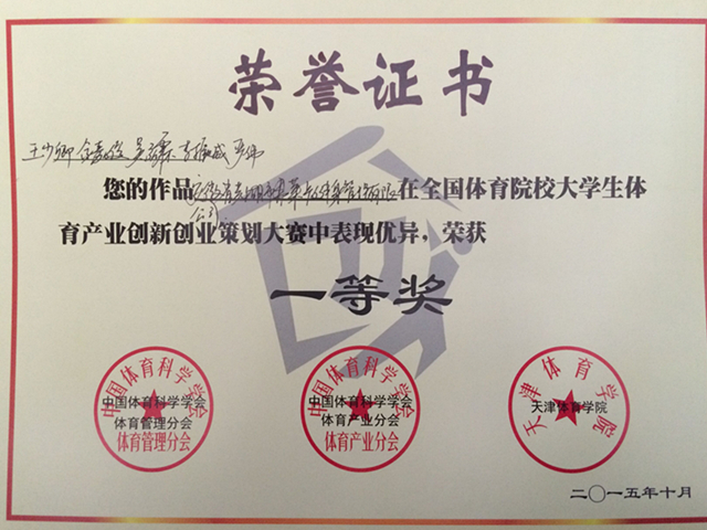 本网讯(英国正版365官方网站 徐梦涛) 近日,由中国体育科学学会体育产业分会、中国体育科学学会管理分会共同主办的全国体育院校体育产业创新创业策划大赛在天津英国正版365官方网站举行。公司报送的星洲创业培训学校孵化项目——“弗莱卡校园健身管理有限公司”从全国50所高校104支队伍中脱颖而出荣获一等奖。