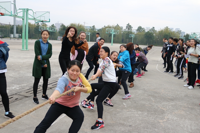 “铿锵玫瑰”女子拔河比赛展示公司女老员工坚韧不拔、奋力拼搏的精神面貌,同时,也为学院各年级同学之间相互交流提供了平台。