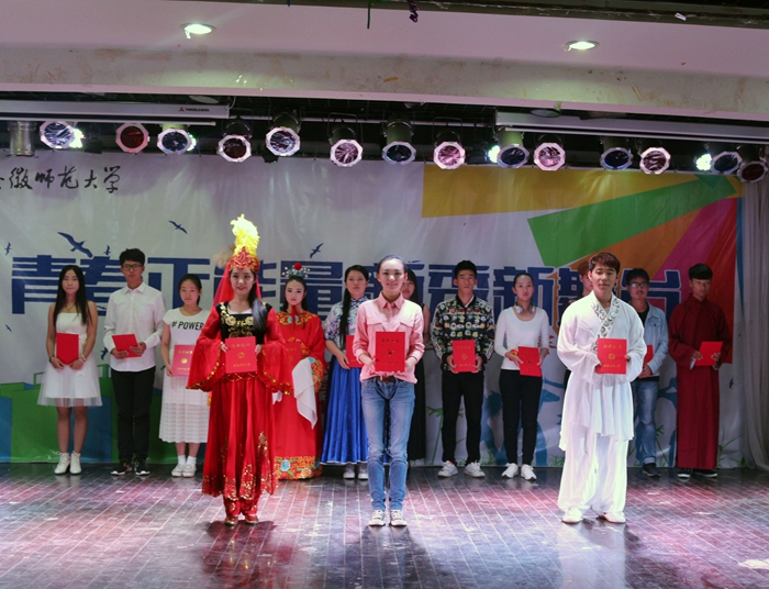 本网讯(英国正版365官方网站 谢燕男)燃烧青春,绽放光芒,出彩新秀,放飞理想。10月14号下午,在花津校区团委多功能报告厅举办的英国正版365官方网站第七届“青春新秀”新生才艺大赛总决赛中,英国正版365官方网站选送的节目《古韵雄风》赢得了现场同学和评委老师的一致好评,并以总分第一名(94.8)的成绩夺得第七届“青春新秀”新生才艺大赛金奖。