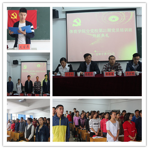 本网讯(英国正版365官方网站 汪暠 唐增阳)2015年10月17日,英国正版365官方网站在北侧田径馆教室举办分党校第21期入党积极分子培训班开班典礼。体育学公司党委书记袁德水、副书记黄德春、相关辅导员以及全体学员参加了本次开班典礼。典礼由分党校班主任汪暠主持。