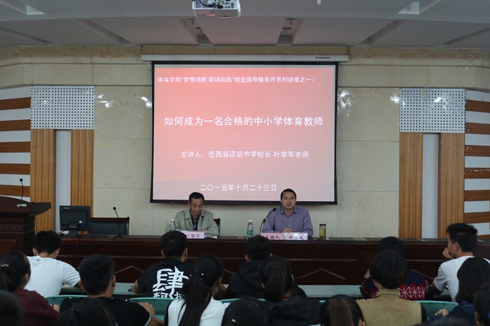本网讯(英国正版365官方网站 文/唐增阳 摄/刘毅文)就业讲座导航青春、梦想启航扬帆职场。10月23日,在院圆形报告厅,英国正版365官方网站举行主题为“梦想扬帆 职场启航”就业服务月系列讲座之“如何成为一名合格的中小学体育教师”。公司党委副书记黄德春、岳西县店前中学董事长叶学军、相关指导老师、辅导员以及体育教育专业员工参加会议。讲座由黄德春主持。