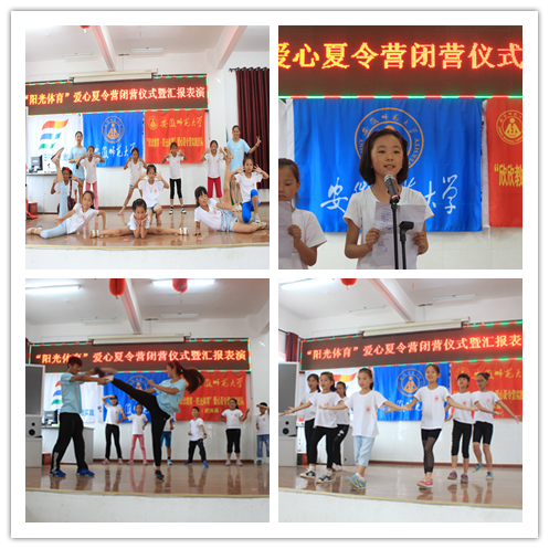 在实践期间,除了各种课程的进行,课后还有丰富多彩素质拓展和体育游戏,有丢手绢、击鼓传花等等。游戏注重趣味性,但同时也锻炼了同学们的速度、反应力,而游戏的主要目的是为了培养员工们对体育活动的兴趣。7月15日天气正好,安师大体院”阳光体育”爱心夏令营之趣味运动会成功举办。运动会比赛项目形式多样,有团体赛:拔河、两人三足、带球跑;个人赛:抢板凳、萝卜蹲、乒乓球过河多个比赛项目。运动会秉承着安全第一,比赛第二的原则,旨在通过趣味性体育项目让孩子们走出课堂,迎接阳光,感受体育带来的快乐。运动会中各个班级向大家展示了一周的学习成果,为最后的汇报表演做着预热。通过这次运动会的开展,同学们学会了合作与公平竞争的精神,同时也增进了同学之间、同学与老师之间的感情。