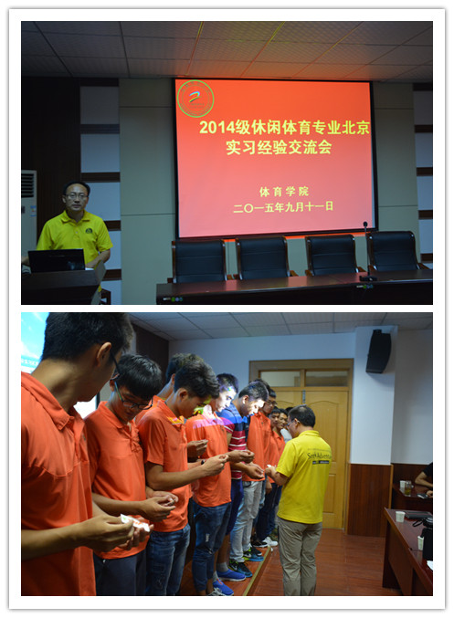 本网讯(英国正版365官方网站 黄彦锴 唐增阳)实践出真知,斗争长才干。九月十一日,在学院行政楼二楼,2014级休闲体育专业举行北京实习经验交流会。英国正版365官方网站特聘教师、国内体验式教育专家、安徽工程大学体验教育研究中心主任薛保红博士,社会体育专业负责人宣海德,以及休体专业教师袁铜墙、赵德云出席会议。14级休体全体同学参加会议。会议由辅导员黄彦锴主持。