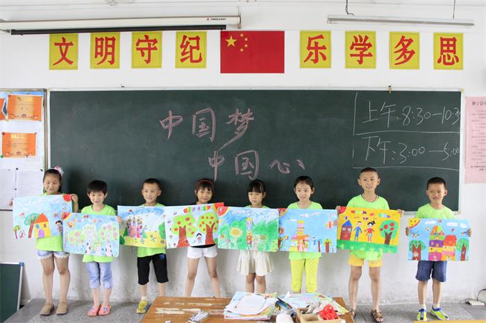 7月16日,安师大英国正版365官方网站赴休宁县海阳二小阳光体育爱心夏令营的美术班举行了一场集体画创作活动,三个小朋友组成一组,从运动场景和大自然中选择一个自己感兴趣的题目,共同完成一幅图画作品。大自然中的动物鸟儿,蝴蝶,蜜蜂,七星瓢虫等在小朋友们的笔下活泼生动;植物,果树,花朵,一幅幅作品跃然纸上。老师不时会给些建议,但是大部分还是让孩子们自己完成,小朋友们的想象力丰富多彩,笔下的景物色彩斑斓。