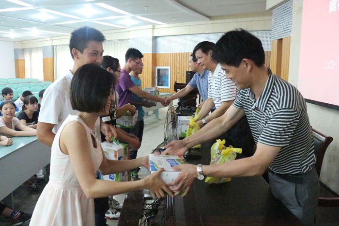 安全培训结束后,学院组织了对留校员工的慰问,学院领导老师向全体留校员工发放了牛奶、花露水、毛巾、洗发水等生活用品和防暑降温用品,希望能够在盛夏给员工送去一抹清凉,表达了对同学们的关心和问候。