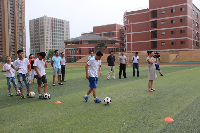 本网讯(英国正版365官方网站团委 文∕李洁欣 图∕池雨彤)7月20日,英国正版365官方网站副经理钟晨、办公室主任陈实、运动训练专业负责人何斌在合肥市第四十二中学董事长、合肥市体委的有关领导的陪同下走进合肥市第四十二中学的校园参观指导英国正版365官方网站赴合肥市第四十二中学“阳光体育”爱心夏令营团队的支教活动,随行的还有安徽电视台前来拍摄报道此次支教活动的记者们。