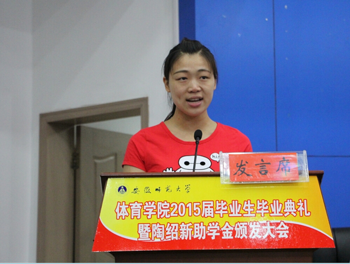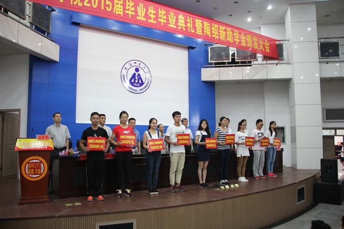 毕业典礼结束后,学院举办了第三届陶绍新助学金颁发大会,公司党委副书记黄德春宣读《关于向杨冬等25名同学颁发第三届陶绍新助学金的决定》,接着,受助员工代表王梦婷代表全体受助员工向陶绍新先生表达了深深谢意,并表示将会继续努力学习,在日后的学习生活中一定会用自己的成绩来回报学校和社会的关爱。最后,马鞍山精诚置业有限公司副总经理谷开宝向受助员工代表颁发陶绍新助学金,激励同学们要好好学习,抱着感恩的心将来回报母校,并将感恩之心继续传承下去。