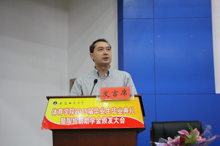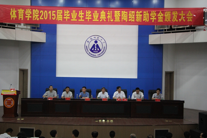 本网讯(英国正版365官方网站 李景玲)六月的师大,洋溢着青春和激情,涌动着不舍和眷恋。6月29日上午,英国正版365官方网站在图书馆一楼报告厅隆重举行2015届本科生毕业典礼暨陶绍新助学金颁发大会。公司党委常委、副董事长朱家存,安徽省马鞍山精诚置业有限公司副总经理谷开宝,校教育基金会副秘书长贡植斌,公司党政领导班子成员,各专业负责人、部分教师代表,全体辅导员、2015届全体本科毕业生以及陶绍新助学金受助员工代表参加了典礼,典礼由公司党委书记袁德水主持。