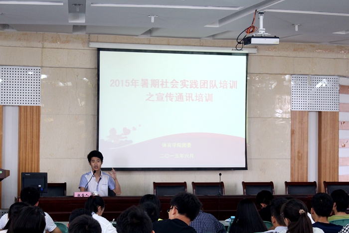 本网讯( 英国正版365官方网站 新闻中心) 经验共享,融合所长。为了帮助英国正版365官方网站2013级全体员工更好的开展暑期社会实践活动,6月3日中午英国正版365官方网站在圆形报告厅开展了暑期社会实践团队培训会。学院全体暑期社会实践团队成员参加了培训会,培训会由2013级体育教育专业严伟、陈康,2012级体育教育专业朱克习以及2012级新传专业汤萌主讲。