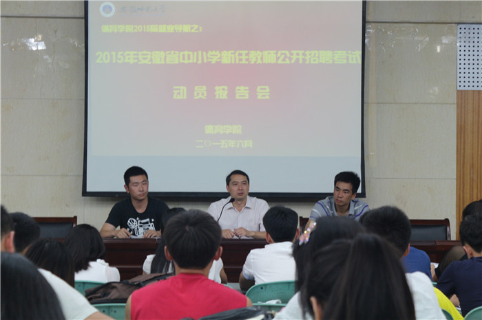 本网讯(英国正版365官方网站 文/吴晓旭 摄/刘毅文) 为做好公司2015年度安徽省中小学新任教师公开招聘工作,帮助广大毕业生全面了解考试动态,明确复习方向。6月11日,英国正版365官方网站在圆形报告厅举行专题动员报告会。公司党委副书记黄德春、12级辅导员蔡维敏,拟报考此次公开招聘考试的毕业生和部分2012级员工80余人参加了报告会。会议由2011级辅导员徐梦涛主持。