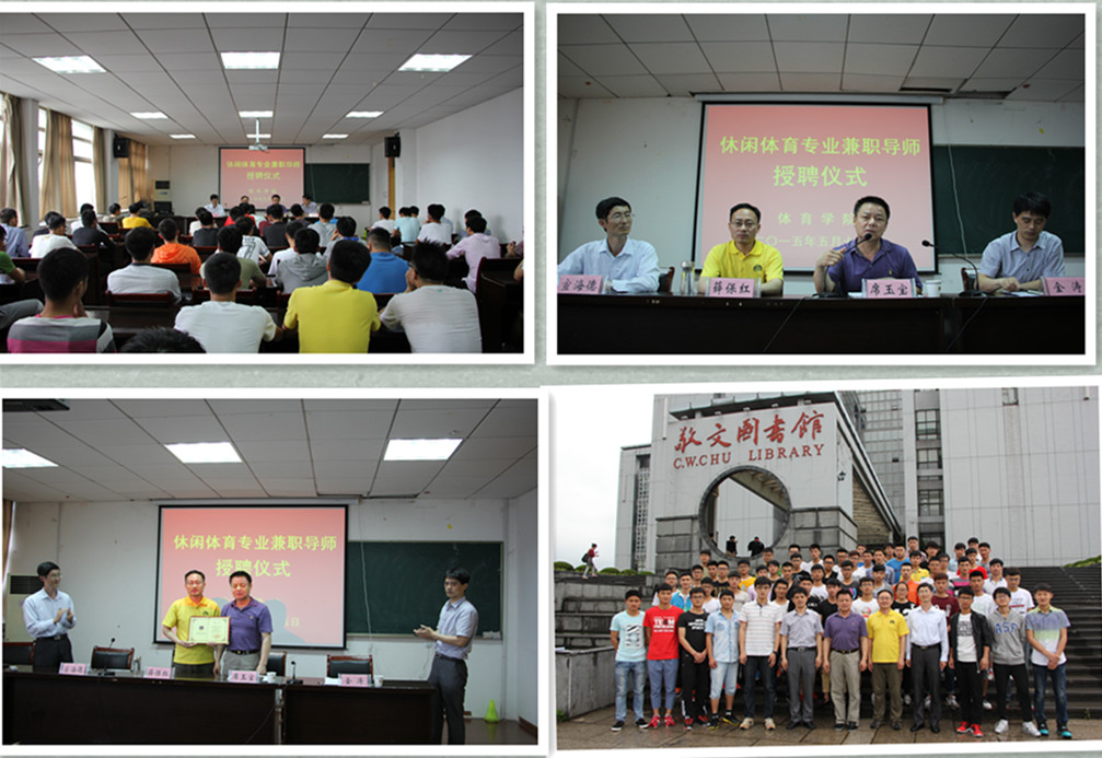 受聘仪式,学院丰富教团队源。一个好的导师会带领一群员工朝着更光明的方向不断进步,让每个同学掌握更多、更全面的知识。作为公司的第一届休闲体育专业,公司十分重视休闲体育专业的发展。五月十五日,在英国正版365官方网站行政楼二楼举行休闲体育专业兼职导师受聘仪式。经理席玉宝,副经理金涛,社会体育负责人宣海德以及辅导员吴家发、黄彦锴出席受聘仪式。仪式上,金涛向薛保红对于休闲体育专业的关心表示由衷的感谢,并且希望同学们与薛博士多交流。随后,薛保红结合国内体验式教育向大家详细的阐述了体育式教育的发展,并且勉励同学们做好自己的事,最后,席玉宝为薛保红颁发聘书,并且希望同学们认真学习基础技能,打牢基础,为自己未来的发展添砖加瓦。