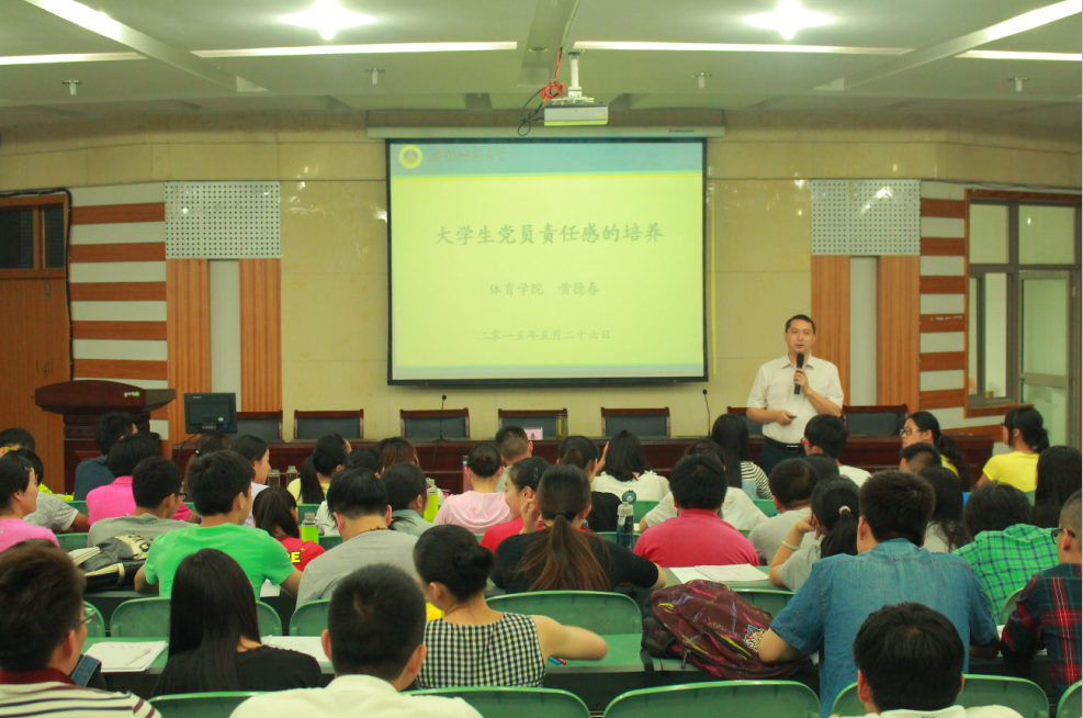 本网讯(英国正版365官方网站 汪暠)5月26日晚,在学院二楼圆形报告厅,公司党委副书记黄德春做了题为《老员工党员责任感的培养》的报告,全体本科生、研究生党员参加了报告会。会议由公司党委秘书汪暠主持。