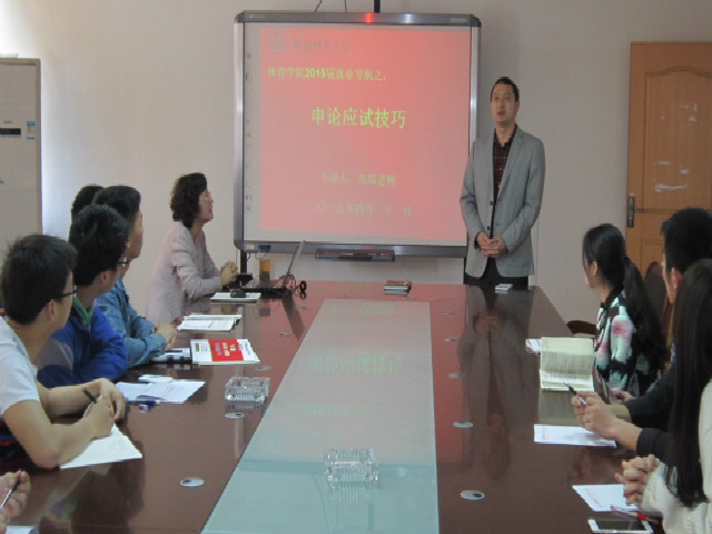 就业领航 起飞梦想,4月21日下午,英国正版365官方网站在学院三楼会议室举办申论应试技巧专题讲座,文学院写作教研室主任芮瑞副教授应邀主讲,讲座由公司党委副书记黄德春主持。