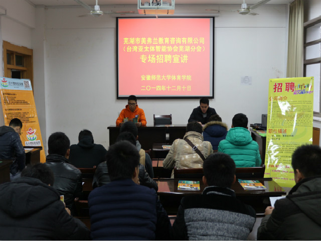 本网讯(英国正版365官方网站 徐梦涛)12月10日下午,河南建培实业发展有限公司、芜湖美弗兰教育咨询有限公司在英国正版365官方网站举行了2015届毕业生专场招聘宣讲会。英国正版365官方网站近40名本科毕业生参加了面试。