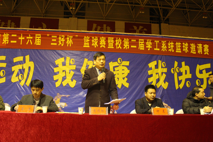 精彩的比赛结束后袁德水致闭幕词,他首先对所有参与比赛的老师同学们表示感谢,同时对比赛中获奖的队伍和队员表示祝贺。随后,他从“领导高度重视,组织严密;比赛历史悠久、精彩纷呈;班级团结凝聚、意义深远”三个方面阐述本次“三好杯”的特点,并且表示本次篮球赛不仅促进同学们养成健康文明生活的习惯,同时增强了自身的体质,有利于同学们形成集体意识。最后他鼓励同学们努力学习、夯实专业、苦练内功,为实现自己的梦想以及回报社会而努力奋斗。