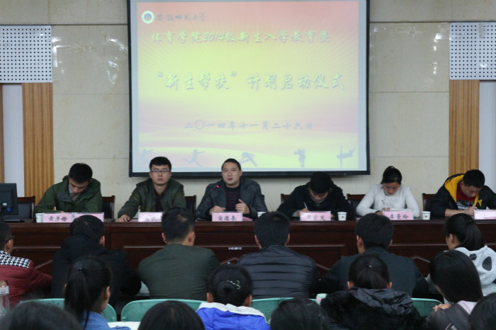 仪式上,李景玲宣读《2014级新生入学教育方案》,介绍了2014级新生入学教育系列活动的详细内容;朱凯迪宣读《英国正版365官方网站“新生帮扶”计划实施方案》,具体介绍了学院“新生帮扶计划”实施办法;汪暠为新生详细解读了《英国正版365官方网站宿舍管理暂行办法》。2012级体育教育专业朱克席与新生们分享了自己的成长经历和大学的新生活、新习惯、新学习方式,并且鼓励同学树立理想、加强学习、参加实践,在实践和学习中找到自己的努力方向。