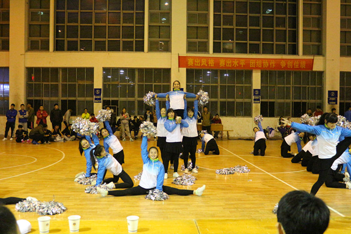 仪式结束后,由去年比赛的冠亚军13运训和12运训为本届“三好杯”篮球赛带来揭幕战,袁德水书记为比赛开球,比赛休息期间,14级体育表演专业带来了精彩的啦啦操表演,为同学们鼓劲加油。