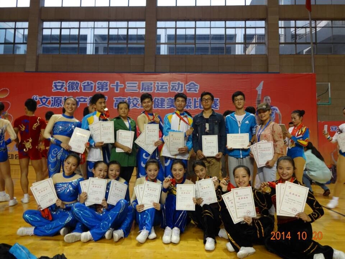 据悉,本次全运会是由安徽省人民政府主办的最高级别的体育赛事,来自全省27所高校的31个运动队进行甲乙丙三组30个项目的激烈角逐。通过本次比赛队员们不仅展示精湛的技艺,更展示出我校员工良好的综合素质,队员在场上场下的表现得到了参赛对手及观众的好评。同时健美操队的训练及参赛进一步激发了公司同学参加体育运动的热情。
