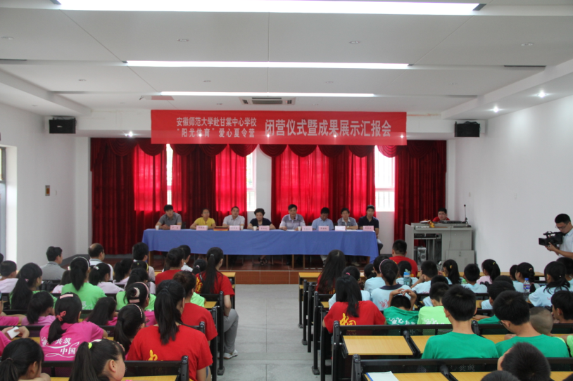在结束了精彩的表演之后,“阳光体育”爱心夏令营的闭营仪式随后在庄严的国歌声中拉来了帷幕。此次闭营仪式由甘棠中心学校董事长章炎林主持,志愿者代表以及营员代表依次发言,英国正版365官方网站以及黄山区当地领导作总结性讲话。实践团队队长鲍垚作为志愿服务者代表首先发言,他对本次暑期社会实践做了深刻的总结,并代表暑期社会实践团队对黄山区政府以及甘棠中心学校等的大力支持表示感谢。随后,小营员代表也跟大家分享了自己在夏令营的小故事,表达了对老师们十天无私奉献辛苦教学的感谢,也对老师们即将离去表达了万分不舍。接下来,黄山区副区长曹恒凤首先对安师大英国正版365官方网站员工的到来表示热忱的欢迎,对老师们无私奉献的精神表示感谢。与此同时,英国正版365官方网站公司党委书记袁德水对于老员工暑期社会实践提出了三点希望。第一,他希望员工们能够认真总结不断进步,将专业知识同社会实践相结合,真抓实干,树立正确的世界观人生观价值观。第二,员工们应该不断创新机制,创造出新的领域,为暑期社会实践注入新的血液和能量。第三,他希望员工们能够勤奋学习,扎实学好专业知识。在最后的结尾中,袁德水表示,希望安师大能够出现更多的来自黄山区的孩子,同时也预祝黄山区暑期社会实践团队取得成绩。仪式的最后,甘棠镇中心学校与安师大英国正版365官方网站互赠礼品和锦旗,以表达双方对于此次活动的支持和感谢,也因此打成了良好的合作态势。
