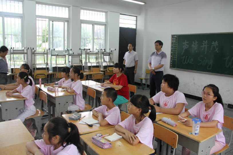 本网讯(英国正版365官方网站团委) 2014年7月15日上午,冒着瓢泼大雨,安师大公司党委书记袁德水、副书记黄德春以及黄山区副区长曹恒凤一行来到黄山区甘棠镇中心学校指导暑期爱心夏令营的师生。该实践团队是公司赴黄山区“阳光体育”爱心夏令营志愿服务团队。学院以及黄山区有关领导观看了团队正在开展的社会实践活动,并给予了充分的肯定。