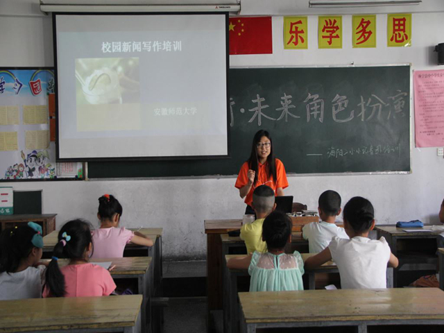 二年级(一)班的教室里,志愿者老师为小记者团的同学们举办了一场培训会。志愿者老师用形象的比喻和浅显的社会现象为小记者团的同学们讲解了何为“新闻”,更手把手的带着孩子们去各个专业班级进行采访。小记者们也跃跃欲试,摄影的摄影,采访的采访,记录的记录,从篮球班到美术班,从音乐班到武术班,从第一回的胆怯、羞涩到后来的驾轻就熟,轻松上阵。小记者们出色的采访,让志愿者老师感到骄傲,同时,他们也从中获得了颇多乐趣。