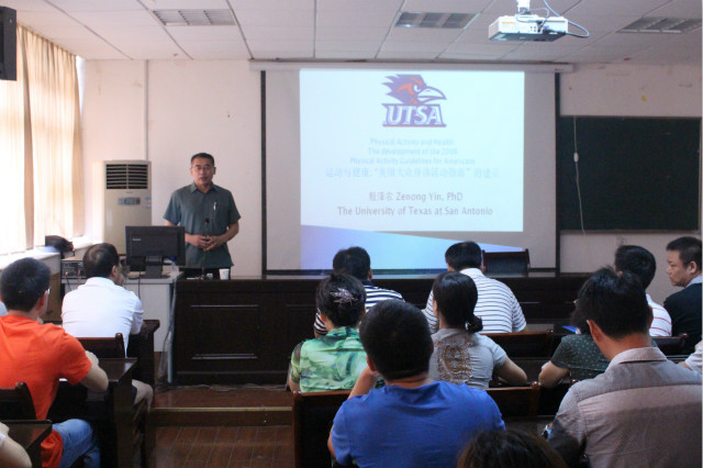 本网讯(英国正版365官方网站 徐梦涛) 6月14日上午,美国德克萨斯大学健康与运动学系殷泽农教授应邀在公司研究生教室为广大师生做题为《身体运动与健康——“美国大众体育指南”的建立》、《美国体育发展过程及重要转折点》的学术报告。近百名师生代表聆听了报告。