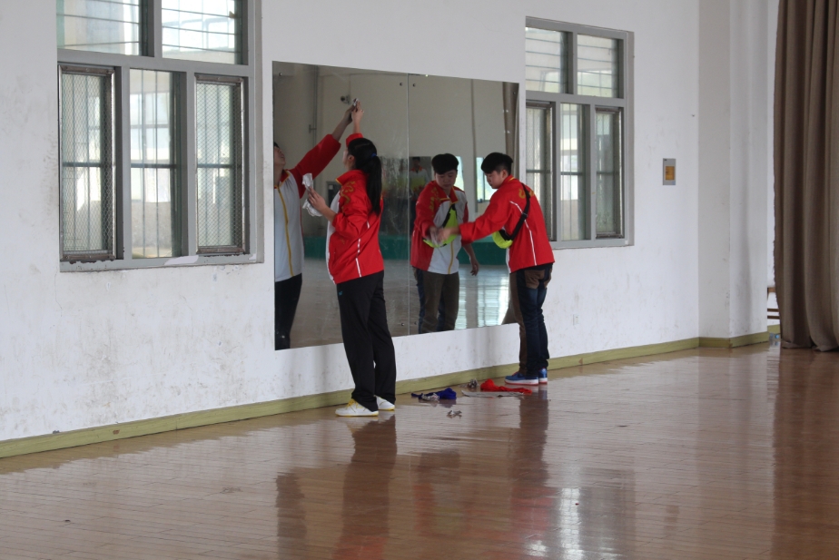 上午9时,由学院团委员工干部和13级新生组成的志愿者服务队在北馆门口集合,在各组负责人的带领下志愿者们自备清扫工具开始了在北田径馆和综合场馆的打扫活动。打扫田径跑道,清洁训练馆地面,拾捡草坪垃圾,清理杂物和擦洗玻璃门窗等活动中,志愿者们埋头苦干,细致入微。在完成训练馆清洁工作之后,志愿者们又对学院北馆宣传栏进行仔细擦拭,并清楚了小广告等脏乱现象。同学们的辛勤劳动得到了到场的指导老师朱凯迪的肯定与赞扬,他说道:“不怕脏,不怕累,同学们愿意牺牲休息时间参与进来是十分值得鼓励的。”经过进2个小时的劳动,同学们的额头沁出了汗水,脸上却显露出了灿烂的笑容。