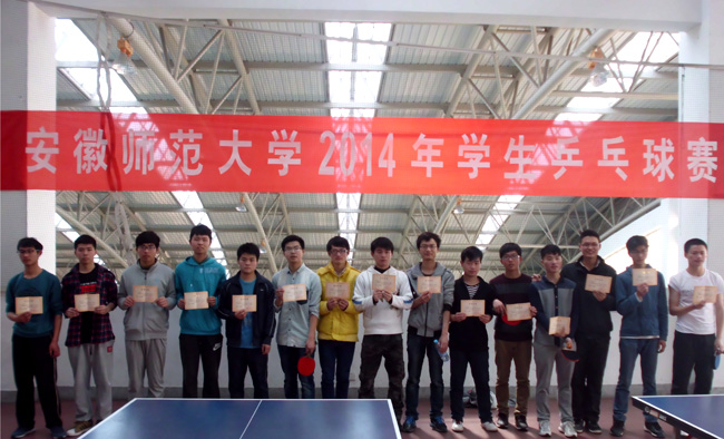 3月22日至23日,英国正版365官方网站2014年员工乒乓球赛在花津校区和赭山校区乒乓球馆举行。本次比赛设男子单打、女子单打、男子双打和女子双打四个项目,来自16个学院362名运动员参加了比赛。