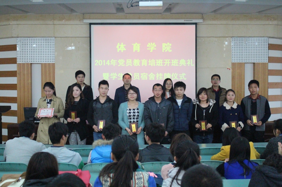 本网讯(英国正版365官方网站 何瑶)3月23日下午3点,2014年党员教育培训班开班典礼暨员工党员寝室挂牌仪式在学院二楼报告厅举行。校团委副书记梁燕,院党委副书记黄德春,院团委副书记仲飞、全体辅导员以及全体学员出席了本次会议。会议由培训班班主任吴家发主持。