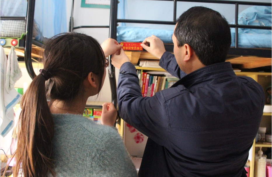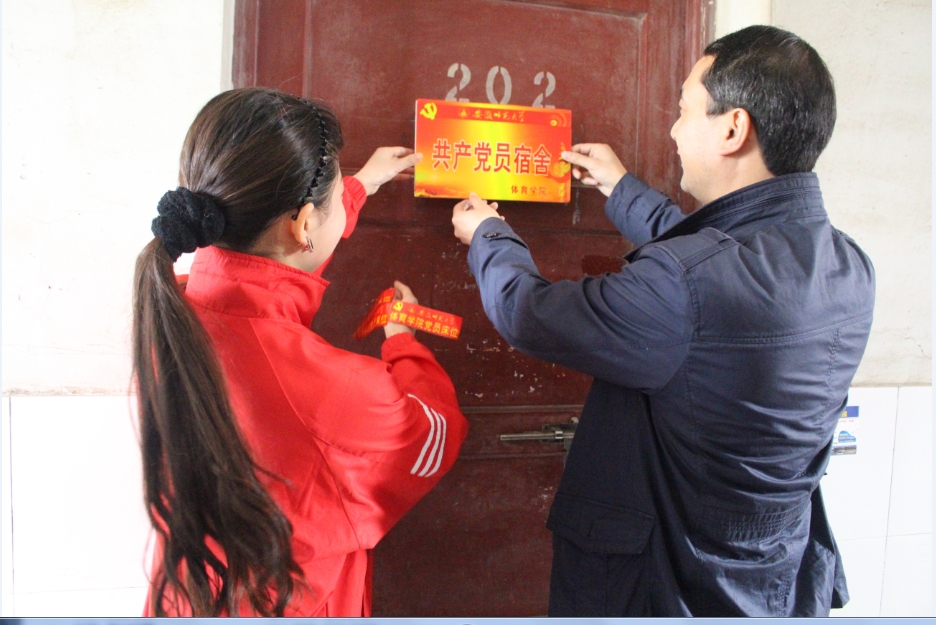 会后,全体领导老师移步秋实园33栋为员工党员宿舍挂牌,在与党员同学进行亲切谈话时也对党员员工提出希望:时刻牢记加强理论知识学习,在各方面真正地起到模范带头作用,落实到实处,从点滴做起,无愧于“共产党员”这个光荣称号。