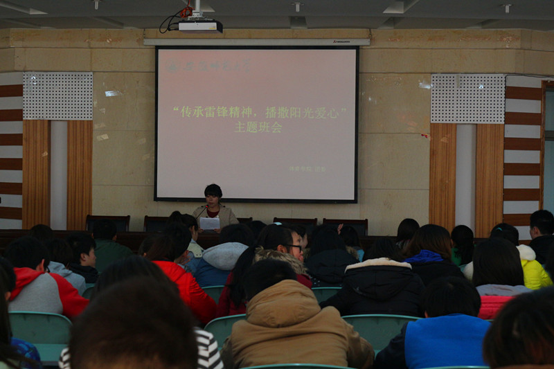 本网讯(英国正版365官方网站 朱凯迪 新闻中心 夏健) 3月5号“雷锋日”,也是毛泽东同志题写的“向雷锋同志学习”的第47年周年纪念日。为了继承和发扬雷锋同志的优良品德,让雷锋精神引领我们成长,争当新时期雷锋传人,3月5日下午,英国正版365官方网站在圆形报告厅召开“传承雷锋精神,播撒阳光爱心”主题班会。13级全体员工及学院主要员工骨干到场参加,会议由院团委副书记朱凯迪主持。