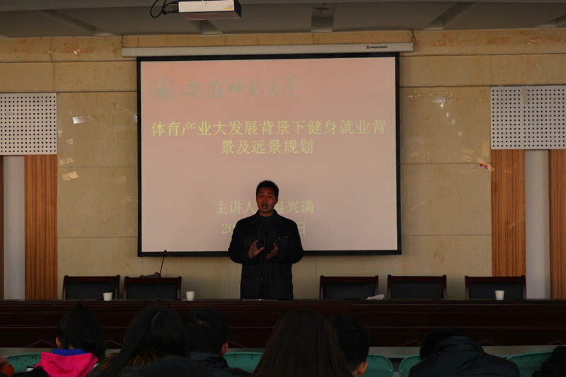 随后,温兴满做了题为“体育产业大发展背景下健身就业背景及远景规划”就业专题辅导报告,用体育产业占GDP的20%来强有力的论证如今健身教练行业的发展程度,大量的健身人才有待开发,同时运用大量的生活实例来阐述健身教练价值的体现,鼓励同学们积极培养创业意识。