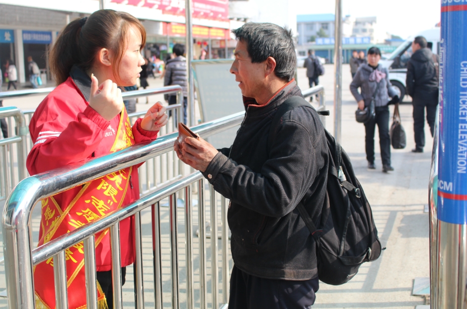3月5日下午,经过火车站相关人员的培训,英国正版365官方网站志愿者们分别在自动售票窗口、人工售票窗口、入出站口等处协助工作人员进行秩序维护和旅客引导。除了帮助乘客携带行李,为乘客指示路径之外,志愿者们还进入车站检票点和候车室,协助工作人员指导乘客,帮助乘客解决突发性问题。