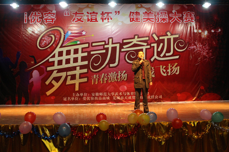 (英国正版365官方网站 蔡维敏)2013年11月30日,武术与体育舞蹈协会在在安师大南校区大礼堂成功举办了第四届“友谊杯”健美操大赛。公司党委副书记黄德春、院团委副书记仲飞、武术与体育舞蹈协会指导老师蔡维敏和辅导员张春莲出席本次大赛并担任评委。本次大赛得到天城贸易有限公司赞助。