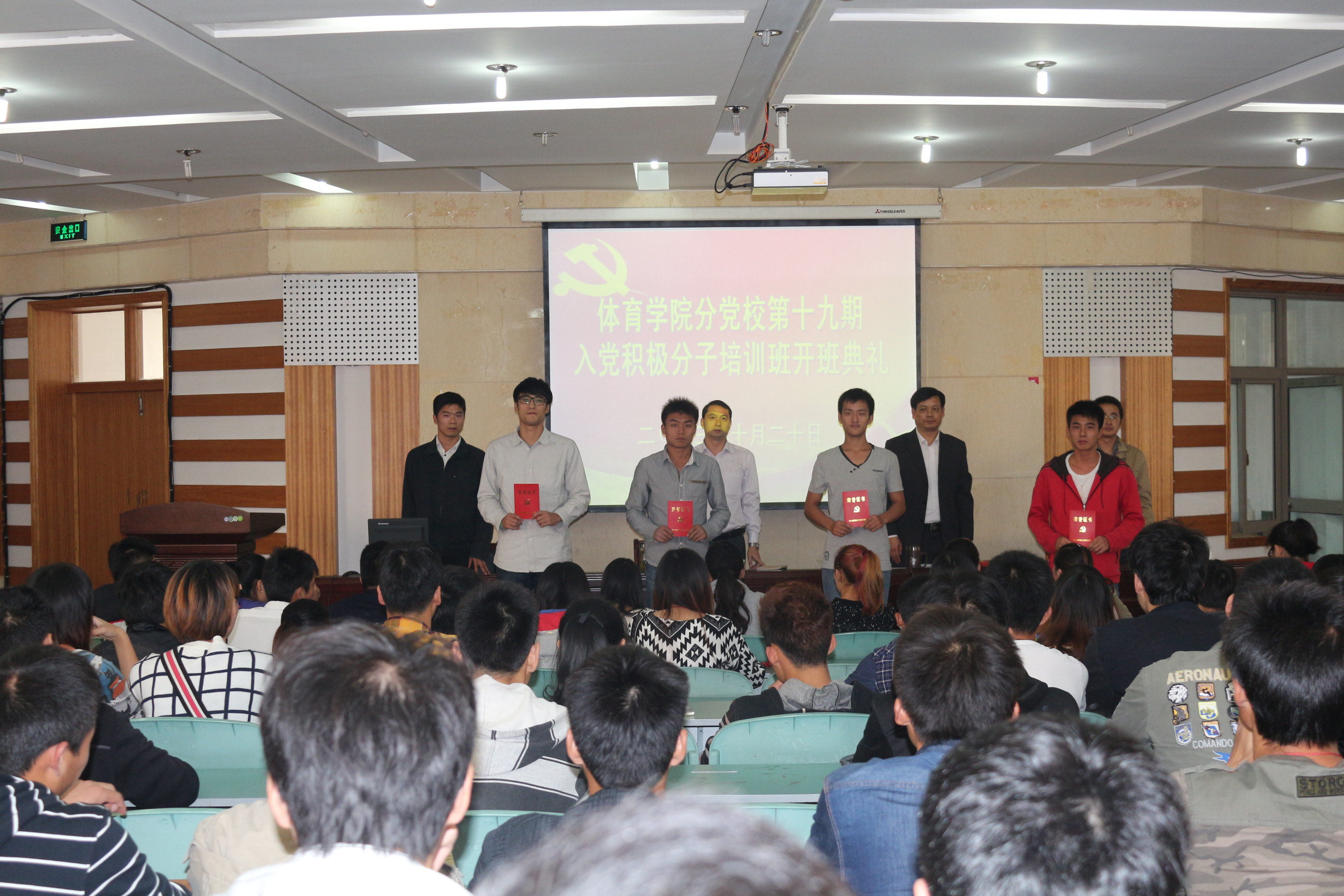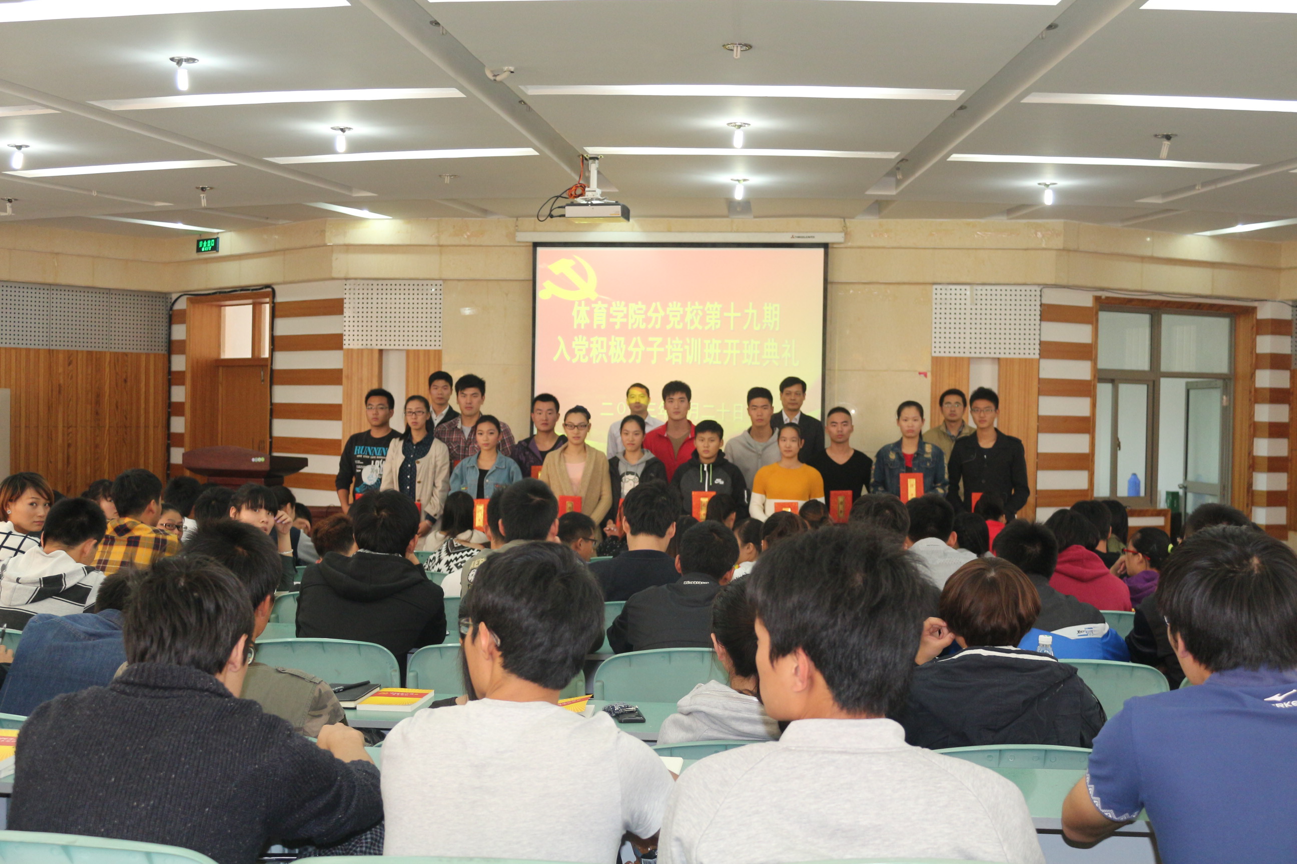 会议在庄严的国歌声中拉开帷幕。会上,宣读了《英国正版365官方网站分党校第18期老员工入党积极分子培训班优秀学员的表彰决定》、《英国正版365官方网站分党校第19期培训班教学实践工作计划》、任命了培训班班级干部并向他们颁发了聘书。培训班班长、2012级体育教育专业程立同学代表全体学员向组织保证一定从严要求自己,认真参加培训班的学习和实践活动,用实际行动接受党组织的考核。