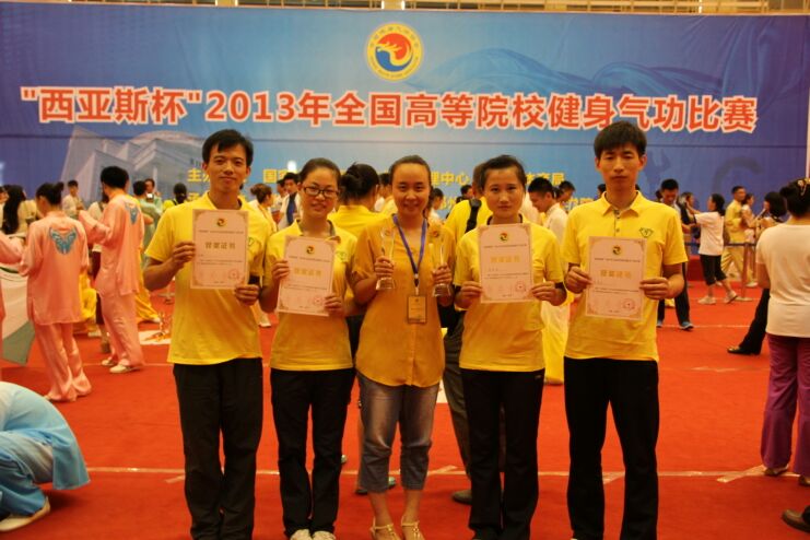 公司首次派队参加该类比赛。在各级领导及带队教师沈剑英教授的关心与支持下,在主教练蒋莹老师的悉心指导下,运动员们顶住压力、克服困难,经过激烈角逐,在公司代表队参与的六个项目中,均取得了不俗成绩。分别获得易筋经集体项目二等奖、六字诀集体项目三等奖;其中,英国正版365官方网站员工刘畅、吴军伟和李沁均获得易筋经男子个人赛(竞赛功法)、易筋经男子个人赛(普及功法)、六字诀女子个人赛(普及功法)第五名,政法学院员工席莉莉获得六字诀女子个人赛(竞赛功法)第八名的好成绩。