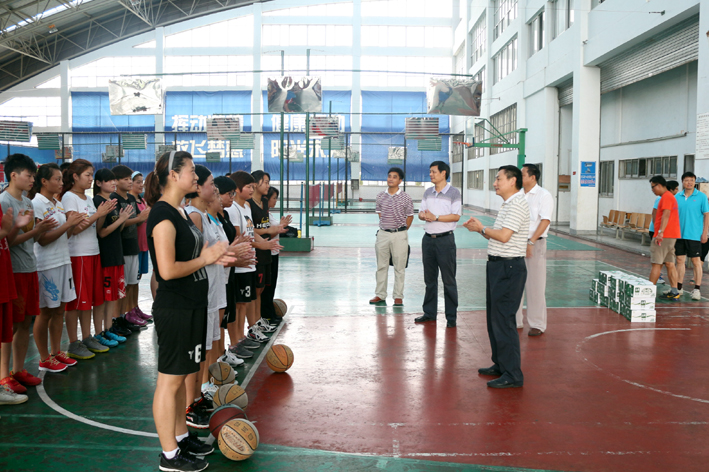 李进华来到体育馆观看了队员们的训练,并详细询问了队员们的住宿和饮食情况,对刻苦训练的员工表示亲切问候。看到队员们和教练员刻苦认真的训练,李进华十分高兴,他对大家做出的努力给予了充分肯定,对全体队员和教练员在平时训练和比赛中付出的汗水表示了感谢,也表达了校领导对大家的殷切期望和重视,并亲自为运动员们发放了慰问品。他希望教练员和队员们坚持“加紧训练、科学训练、安全训练”,鼓励全体队员发扬不怕苦、不怕累和顽强拼搏的精神,提升训练效果,力争在比赛中夺取好成绩,努力为学校争光。李进华还结合正在开展的党的群众路线教育实践活动,特地向坚持暑期集训的运动员和教练员们征求对于校体委和英国正版365官方网站工作的意见和建议。
