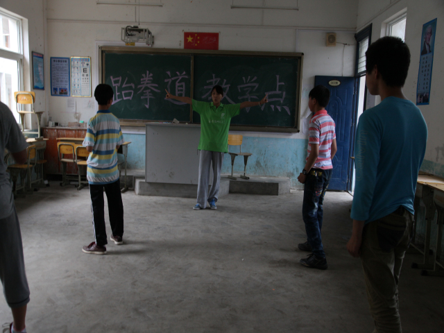 本期夏令营根据员工们的兴趣爱好和队员们的组成特点,在去年乒乓球、羽毛球、篮球、体育舞蹈、健美操五个教学班的基础之上增添了跆拳道这门新的课程,极大的丰富了孩子们的学习生活。通过几天的相处,孩子们和实践队员们建立了深厚的友谊。课上,他们是老师与员工的关系,课下,他们是朋友的关系。2011级体育训练专业的马周欢同学是篮球班的带班老师,篮球班的孩子们亲切地称呼他为“小马哥”。