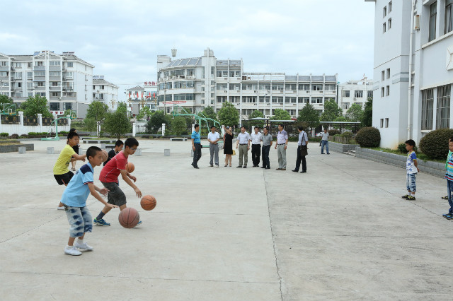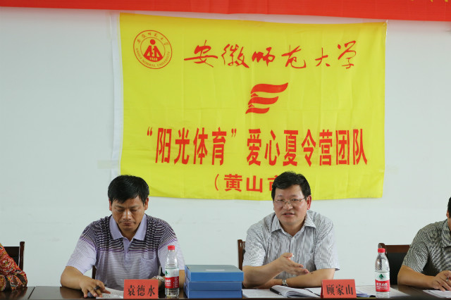 本网讯(英国正版365官方网站 徐梦涛)7月14日上午,公司党委书记顾家山在校办公室主任马三保、副主任叶丹,校员工处副处长陈莉,公司党委书记袁德水、副书记黄德春及休宁县县委、教育局等单位领导的陪同下来到黄山市休宁县海阳第二小学亲切慰问了“阳光体育”夏令营暑期社会实践团队的师生们。