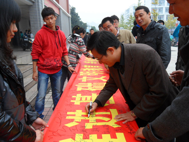校院两级领导高度重视此次活动。11月18日,校员工处处长台启权、公司党委副书记黄德春与院团委副书记仲飞以及院2012级全体辅导员一起出席此次基础文明创建月活动启动仪式,广大新同学踊跃参与,争相在宣传横幅上签下自己的名字,立志争做一名新时代的文明老员工。公司党委黄德春副书记多次莅临活动现场,并对活动给予悉心指导。
