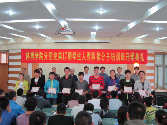 会议在庄严的国歌声中拉开帷幕。会上,宣读了《关于调整英国正版365官方网站分党校校务委员会的通知》、通报了本期培训班工作计划、任命了培训班班级干部并向他们颁发了聘书。培训班学员代表、培训班班长、2010级体育教育专业张庆亚同学代表全体学员向组织保证一定从严要求自己,认真参加培训班的学习和实践活动,用实际行动接受党组织的考核。