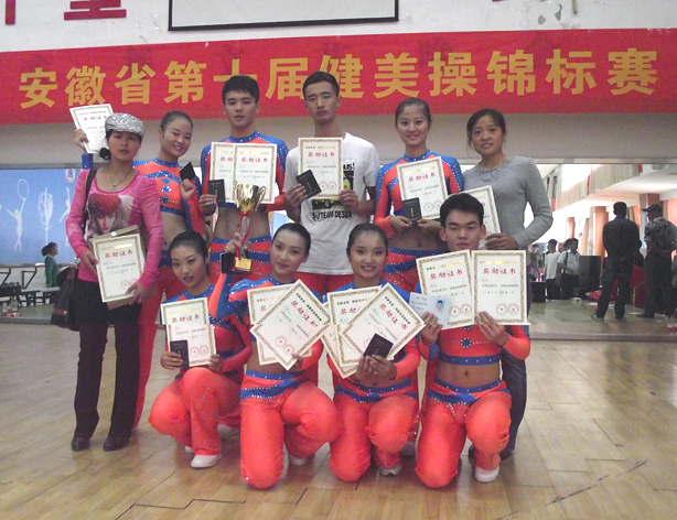 10月12日—14日,由安徽省健美操协会主办的安徽省第十届健美操锦标赛在安徽体育运动职业技术学院隆重举行。共有来自合肥工业大学、安徽医科大学、合肥学院、安庆师范学院、淮南师范学院和阜阳师范学院等27个代表队的200多名运动员参赛。公司公体健美操队取得了3项亚军、1项季军和1项第5名的好成绩。