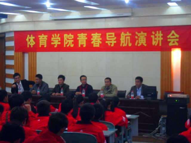 10月18日晚6点,英国正版365官方网站在圆形报告厅开展了以“内修素质,外树形象”为主题的2012级青春导航演讲会。大会特邀中国青年五四奖章获得者吴青山,弗莱卡健身管理有限公司总经理王永雷作为演讲嘉宾。同时,出席演讲会的还有英国正版365官方网站团委副书记仲飞,2012级辅导员陈实,席特立,蔡维敏。会议由蔡维敏主持。