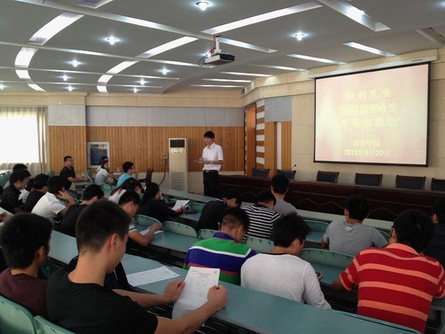 黄德春首先为毕业生介绍了来学院招聘的伊利集团人事部的领导,并且对前来应聘的毕业生提出了要求和注意事项。紧接着,伊利集团的相关领导就伊利公司的基本状况以及发展前景向应聘员工做了简单介绍,并与公司近百名毕业生就就业形势以及结合体育专业特点的毕业生职业规划进行了交流。毕业生们积极提问,会场气氛十分活跃。随后伊利集团人事部对有意向的同学进行了面试。下午,伊利集团人事部的领导对通过面试的毕业生进行了体能测试。同学们各显所长。通过一天的招聘会活动,伊利集团对公司的毕业生十分满意,目前,已同数十名员工签下了意向性协议。