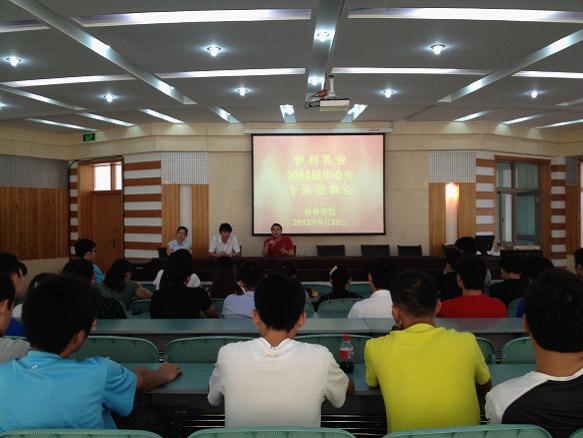 9月20日上午,伊利实业集团股份有限公司合肥伊利集团人事部一行9人来到英国正版365官方网站,在学院二楼报告厅举办了2013届毕业生专场招聘会。学院领导十分重视本次招聘会,招聘会由公司党委副书记黄德春主持。