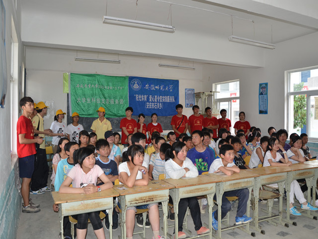 七月入夏以来,随着各个学校陆续放假,员工暑假的来临和高温酷暑的天气,使青少年尤其是学龄儿童非常可能遇到来自各方面的安全问题。为了提高中小员工的安全防范意识,借着文化、科技、卫生三下乡暑期社会实践的机会,安师大英国正版365官方网站赴安庆市石关乡“阳光体育”爱心夏令营团队特邀安徽农业大学暑期社会实践团队一起举办了一场暑期安全知识讲座。从暑期安全防范意识到暑期溺水救护方法,从山区交通安全注意事项到每日如何清洁双手,来自芜湖和合肥两所大学的大哥哥大姐姐们耐心、细致而又不失趣味的教导孩子们远离各种可能存在的安全隐患,养成良好的卫生习惯。