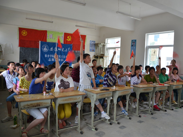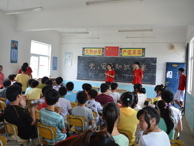 7月5日下午,石关中学教学楼内不断传来孩子们朗朗的欢笑声,安师大英国正版365官方网站赴安庆石关乡“阳光体育”爱心夏令营团队队员为五个教学班的员工们开展了一场别开生面的党团知识竞赛。